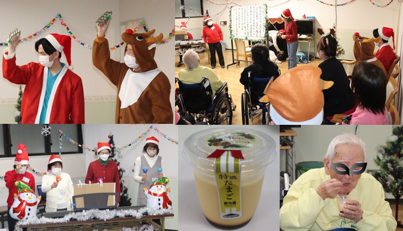 ジングルベルやサンタが町にやってくるなど懐かしのクリスマスソングを患者さんと一緒に、歌い、鈴やカスタネットを鳴らしました。サンタさんやトナカイさんなどが途中参加するなど楽しいひと時を過ごすことができました。